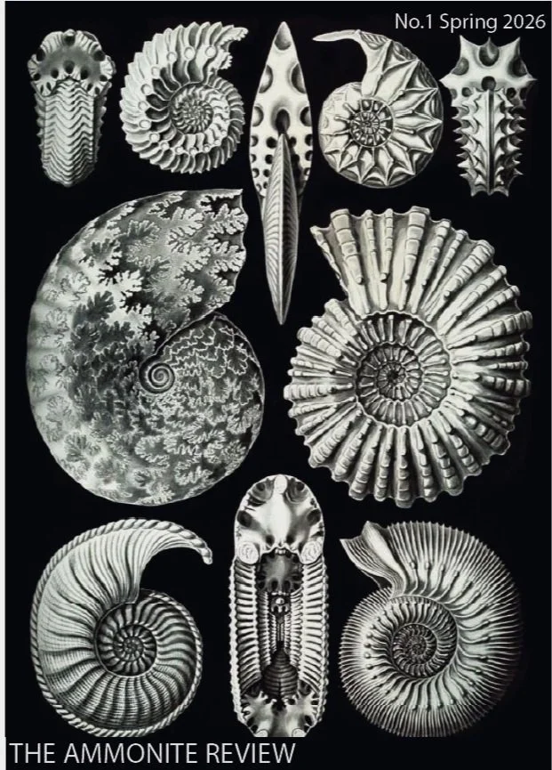 The Ammonite Review Issue 1 - March 21 Dave DraytonTHE YOUTHFULNESS OF CLIFFSCharles MaloneATOMIC WEAPONS WILL NOT DESTROY THE EARTH(DE) EXTINCTION SONNETEXTINCTION SONNET #1Jordan Trethewey GHOSTS OF GRAND BRUITWE KNOW HOW TO TALK ABOUT FAILURELily SmallwoodBEFORE SUNDAY MORNINGJustin EvansSOUTH PAST ELY, DRIVING WEST FROM EUREKA ON HIGHWAY 50 Adelle PurdhamFIELD SHIVERS POETRY FICTION Mish Gajewski-ZambataroRIG IN THE WOODLily Hunger CLOUDSJulianne RichardLOUIS VUITTON PEACH LADY NONFICTION Alex Behm OVINE PAGEANT Ian RoyWHAT IS REMEMBERED, WHAT IS FORGOTTEN Rion Levy A REVIEW OF STILL BY JOANNA COCKERLINE REVIEWS No.1 Spring 2026